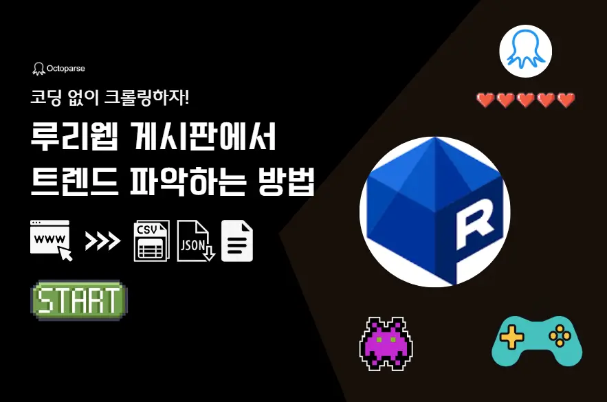 octoparse 템플릿을 이용하여 루리웹과 같은 게임 커뮤니티/게시판 글 정보를 실시간으로 추출하여 트렌드 및 유저 반을을 살피는 방법을 소개합니다.
