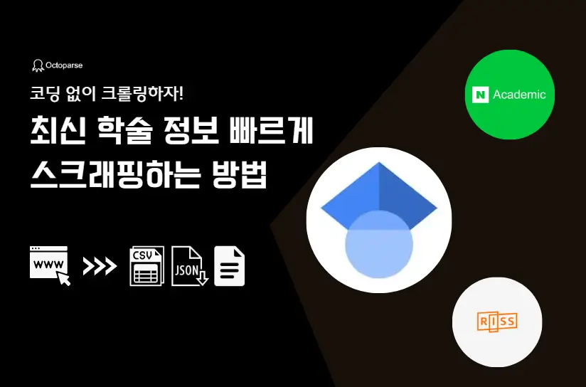 연구 논문을 쓰기도 전에 방대한 학술 정보 수집 작업에 지쳤나요? 이 글은 국내외 대표 학술 문헌 사이트에서 연구 논문 등 학술 정보를 빠르게 수집할 수 있는 octoparse 웹 스크래핑 템플릿에 대해 소개합니다.