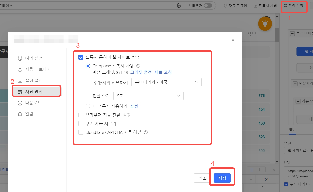 - 작업을 실행하기 전에 설정을 “저장“하는 것을 잊지 마세요. 이렇게 하면 클라우드 또는 로컬 실행 중에 IP 주소가 자동으로 변경되어 차단될 가능성이 크게 줄어듭니다.