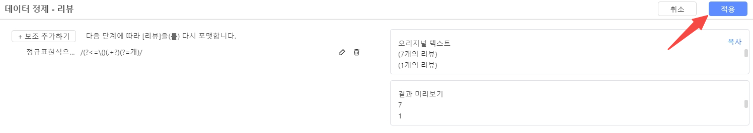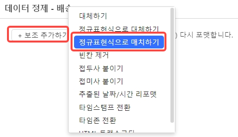 데이터 정제하기 클릭 후 보조 추가하기- 정규표현식으로 매치하기를 클릭합니다.