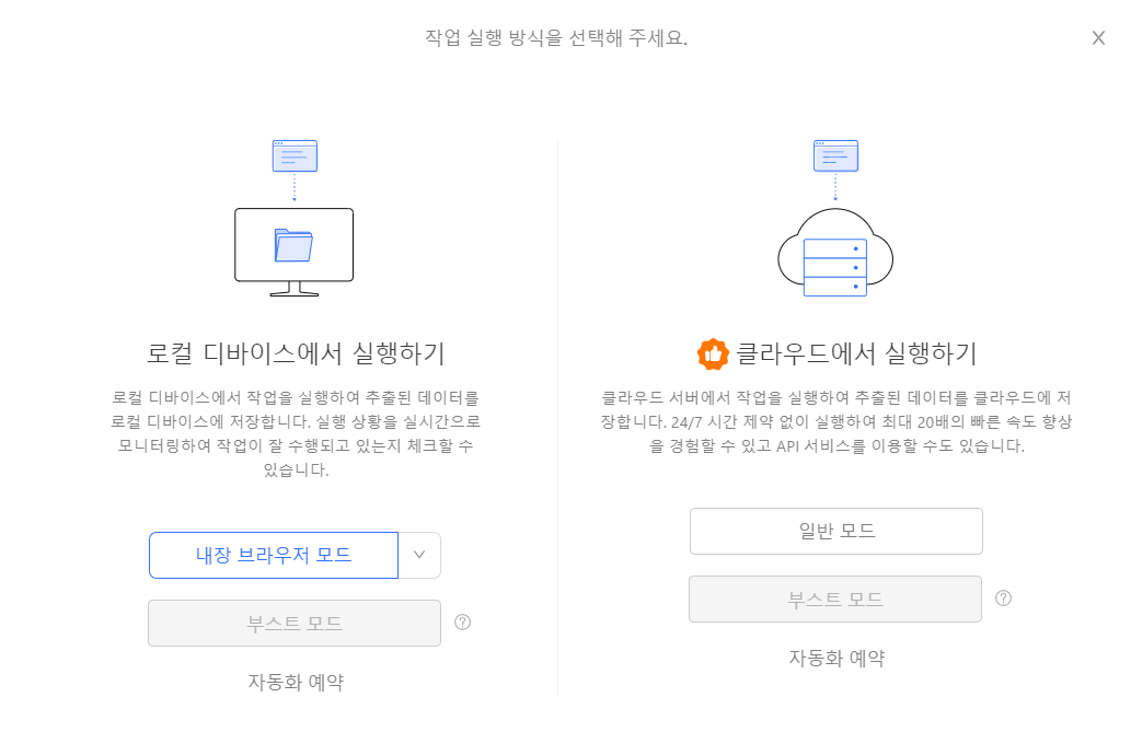 수백 개의 국내외 인기 웹 사이트 스크래핑 템플릿으로 간단하게 데이터를 추출할 수 있습니다.