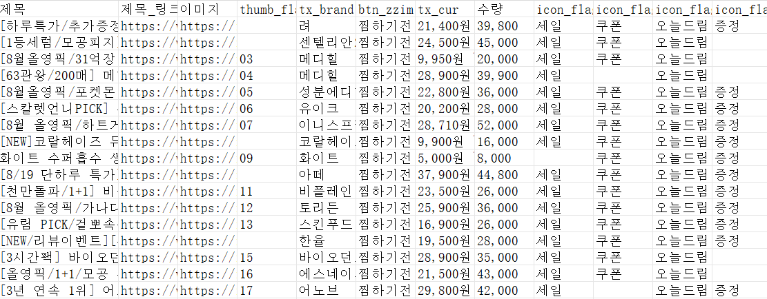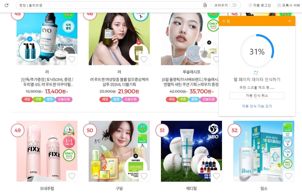 올리브영 상품 데이터를 추출하는 방법